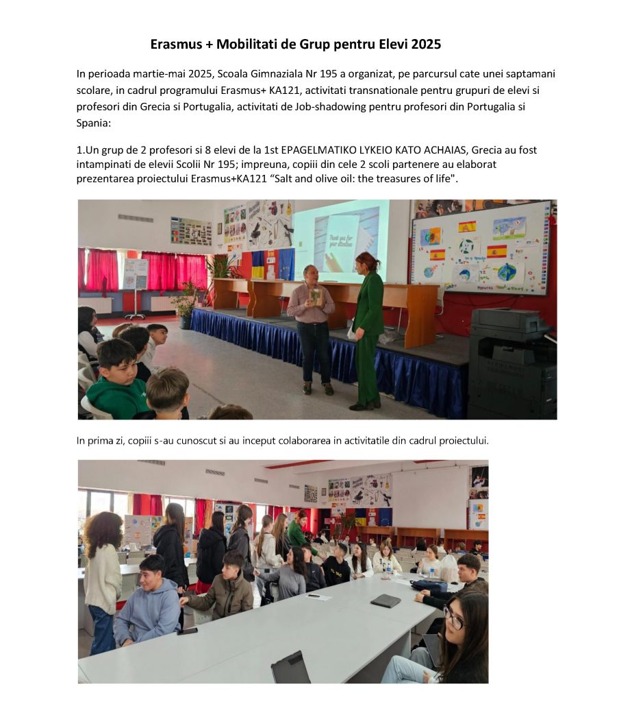 Proiect Erasmus+ – Mobilitatea de grup a elevilor